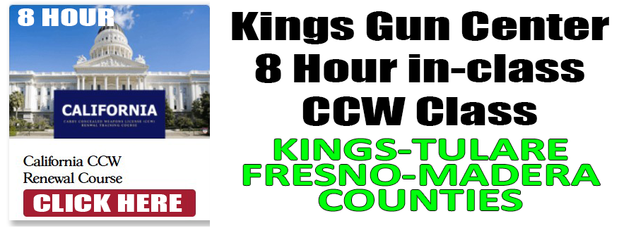 Kings and Tulare County can now take online first-time and renewal classes online and come to Kings Gun Center to pass the Live-Fire qualification test.